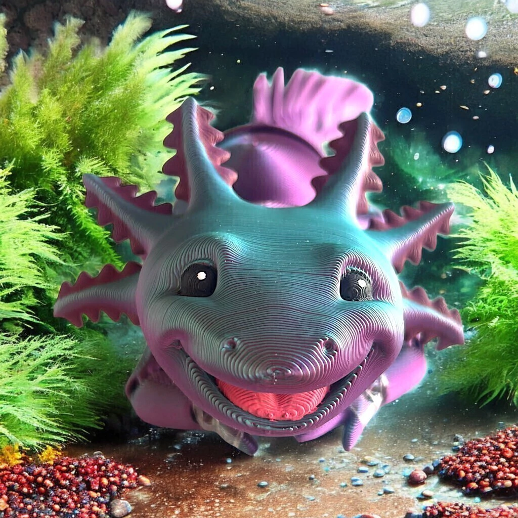 O Axolote, com seu sorriso encantador 😊, é um dos anfíbios mais fascinantes do mundo natural 🌍 — e agora você pode ter esse ser mágico em uma versão articulada!
